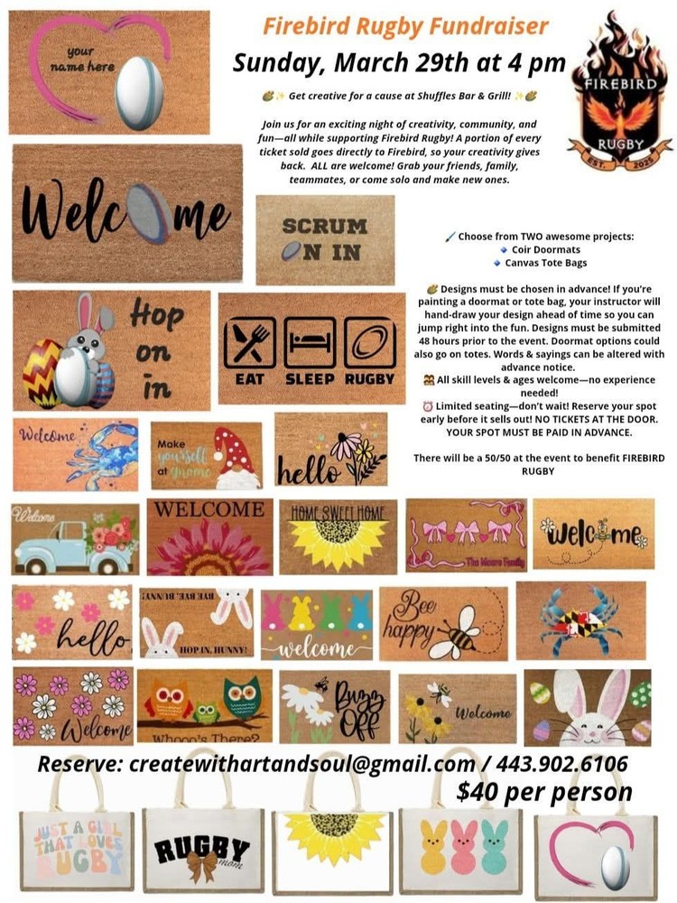 Join us on March 29th for a special Painting for a Cause event benefiting Firebird Rugby 🏉